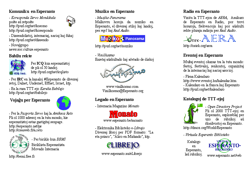 Tiu dokumento uzeblas por Esperantistoj kiel katalogeto de